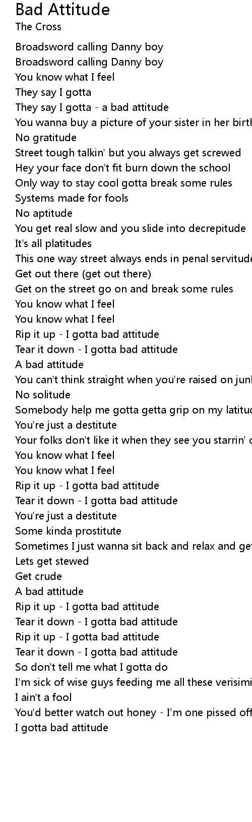 | They say I gotta - a bad attitude | |