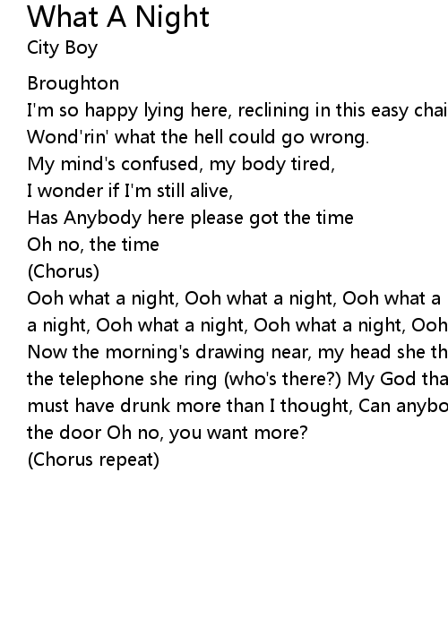 Ooh what a night, Ooh what a night, Ooh what a night, Ooh what |