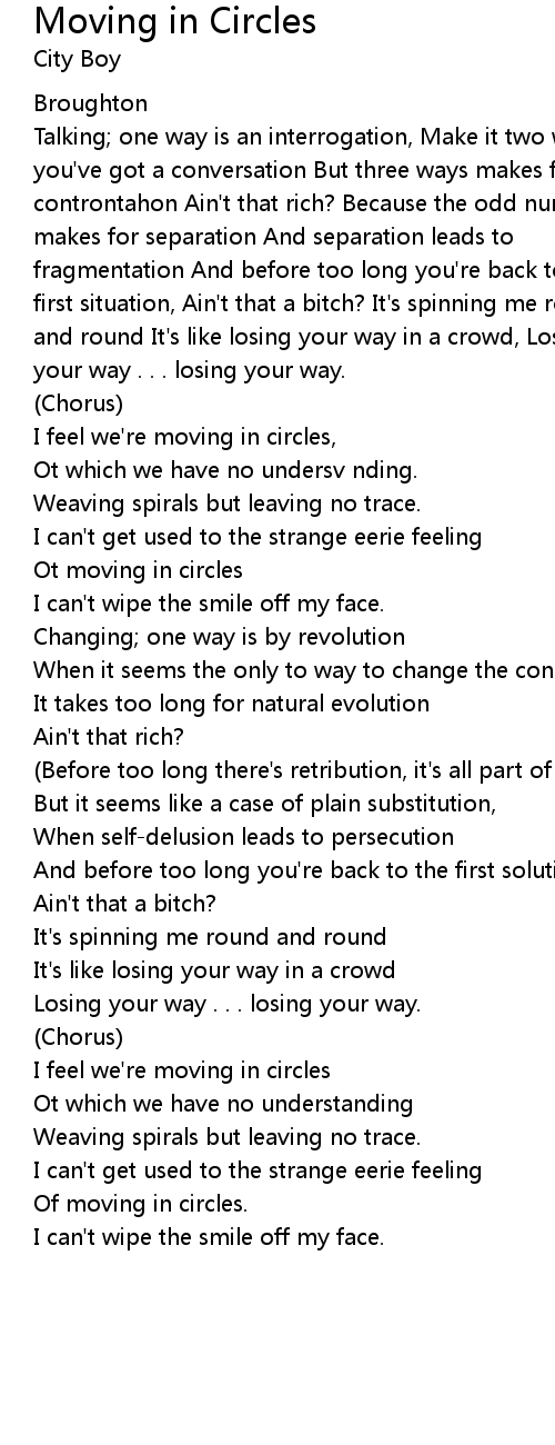 I feel we're moving in circles, |