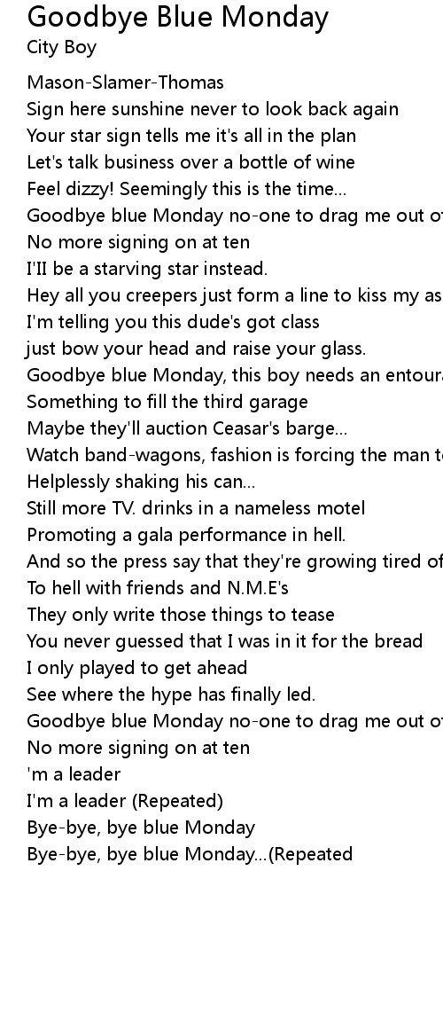Bye-bye, bye blue Monday...(Repeated |