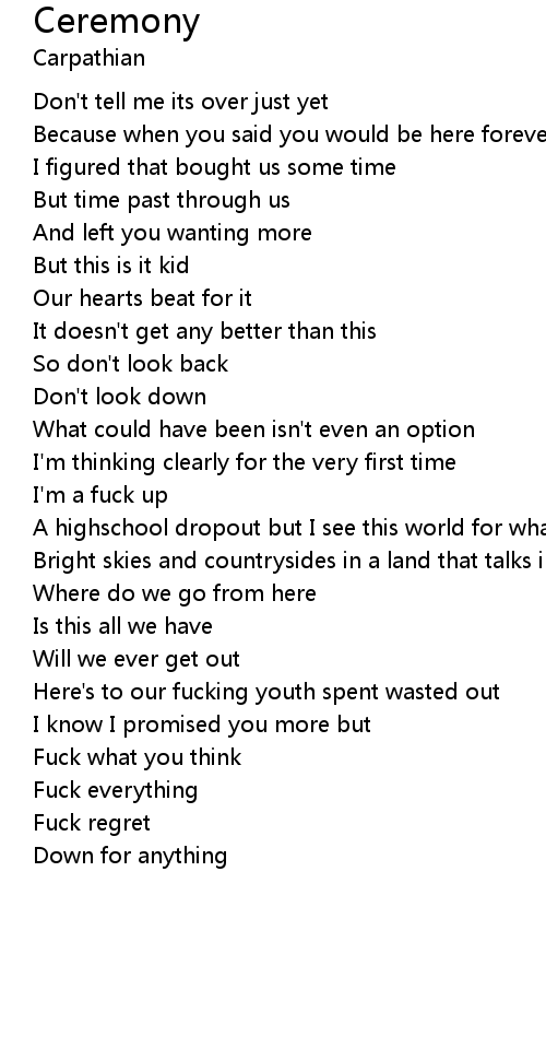 Here's to our fucking youth spent wasted out |