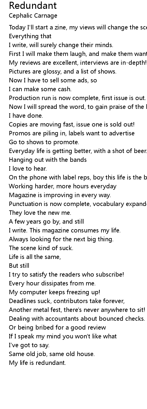 My life is redundant. |