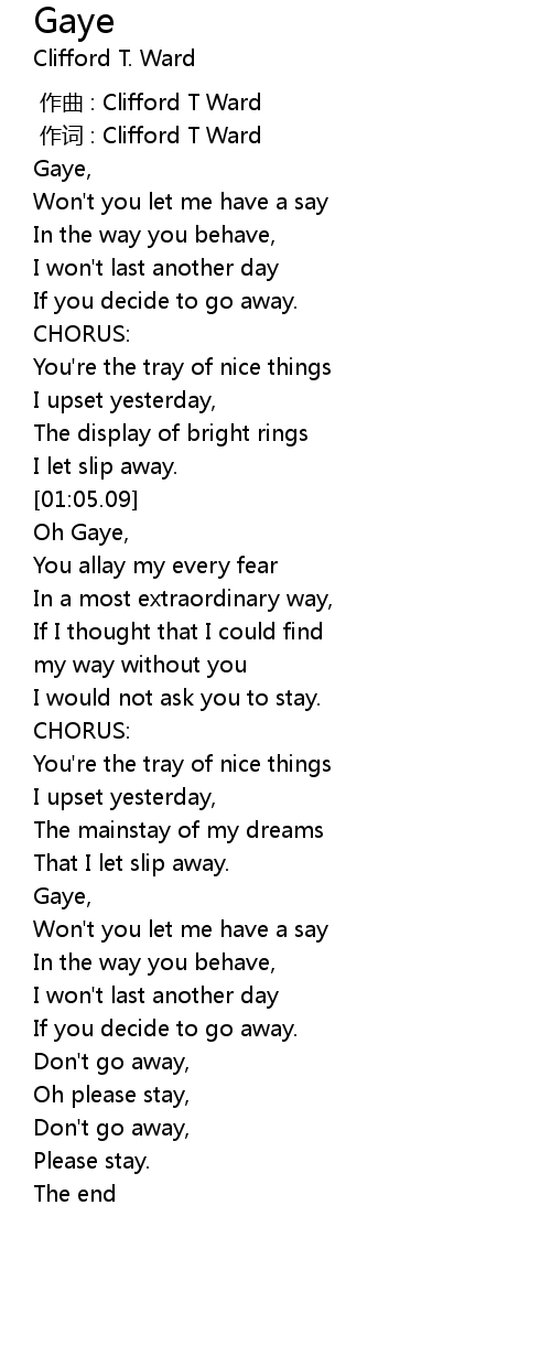 | [00:05.00] | Gaye, |