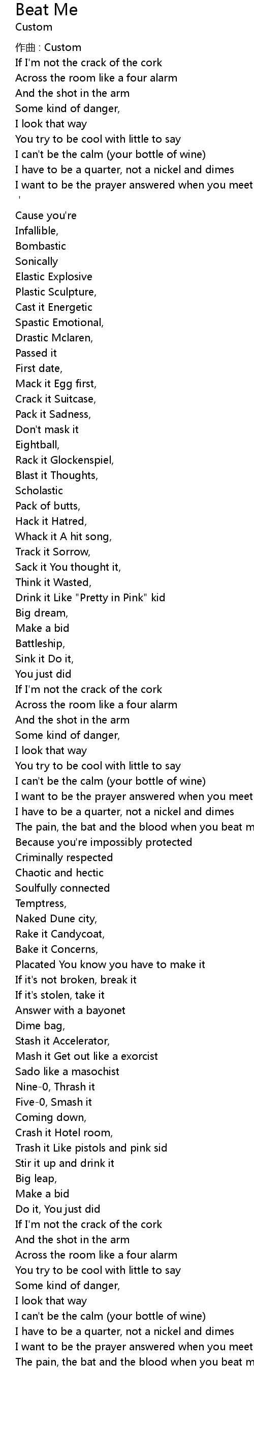 | [5x] | The pain, the bat and the blood when you beat me |