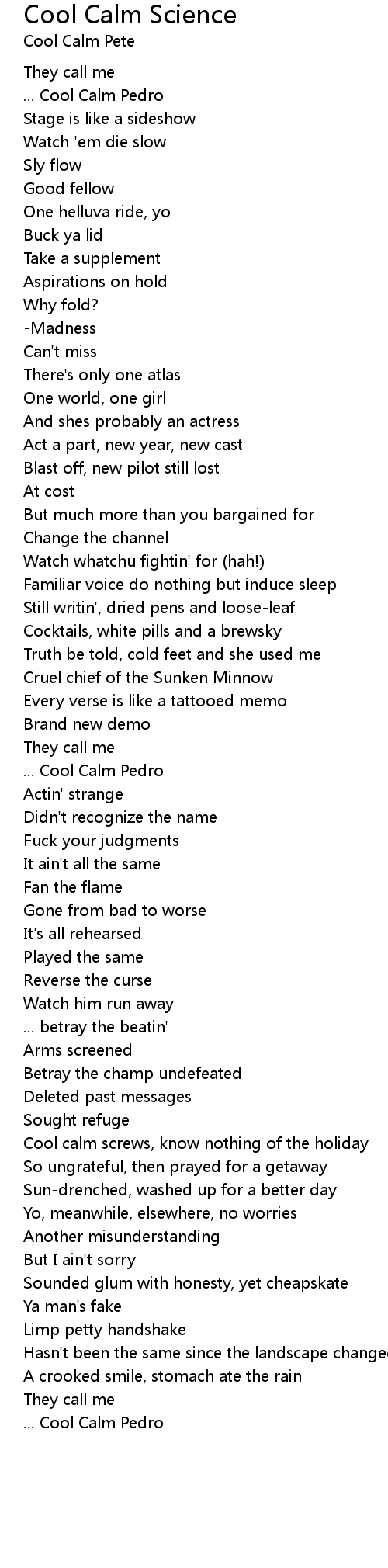 ... Cool Calm Pedro