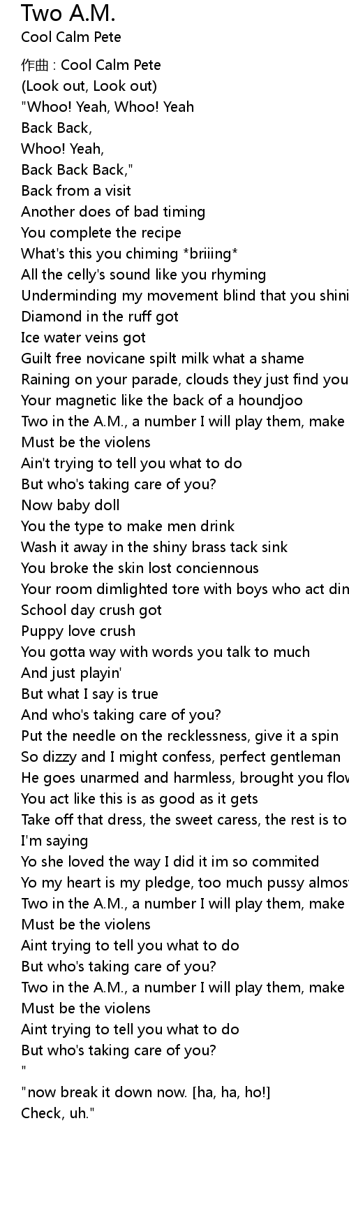 | Two in the A.M., a number I will play them, make you cry when I say them | |