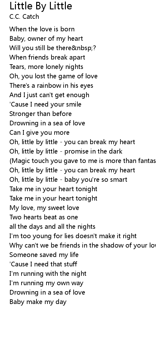 Oh, little by little - you can break my heart |