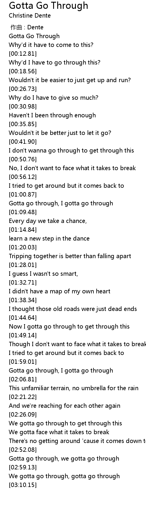 | [03:02.02] | We gotta go through, gotta go through |