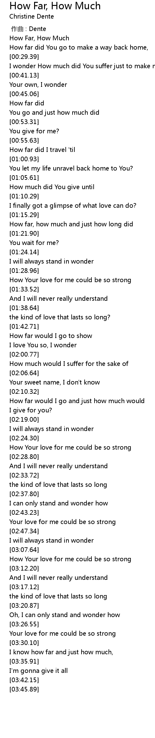 | [00:30.77] | I wonder How much did You suffer just to make my soul |