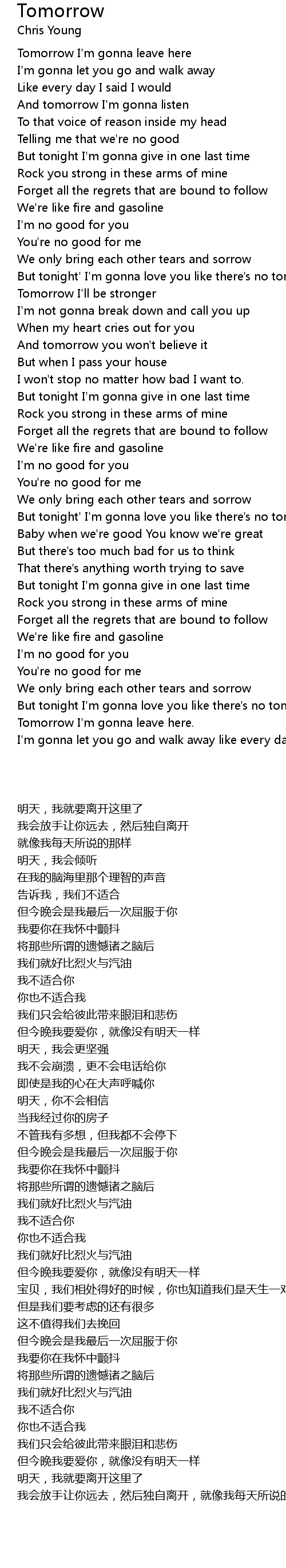 Tomorrow I'm gonna leave here |