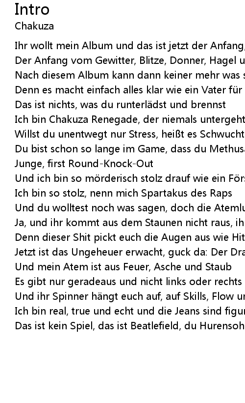 | Ich bin Chakuza Renegade, der niemals untergeht und k mpft | |
