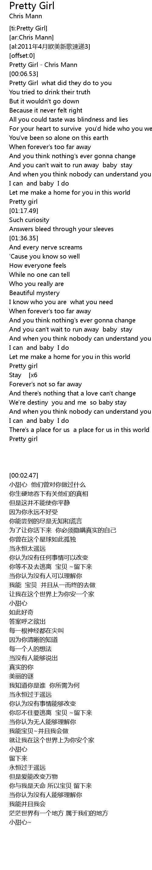 | [00:02.47] | Pretty Girl Chris Mann |