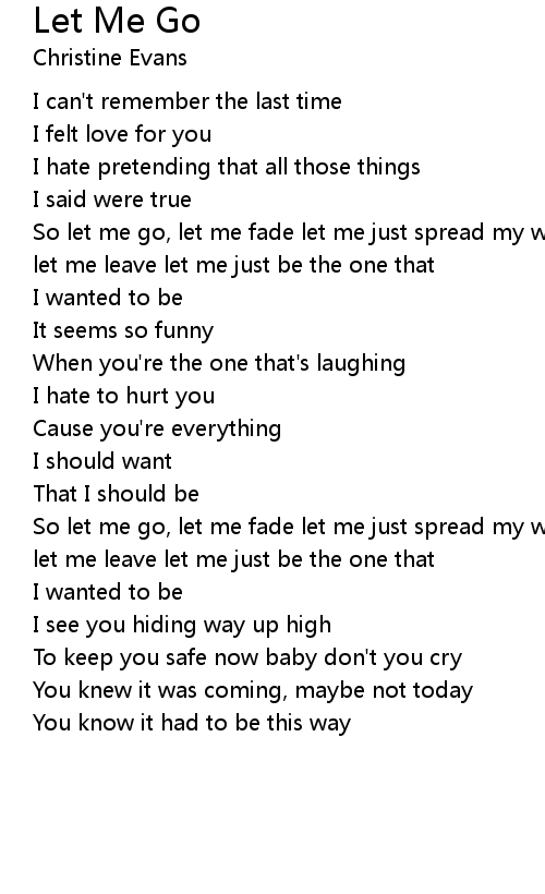 So let me go, let me fade let me just spread my wings and fly away let me run, let me leave let me just be the one that |