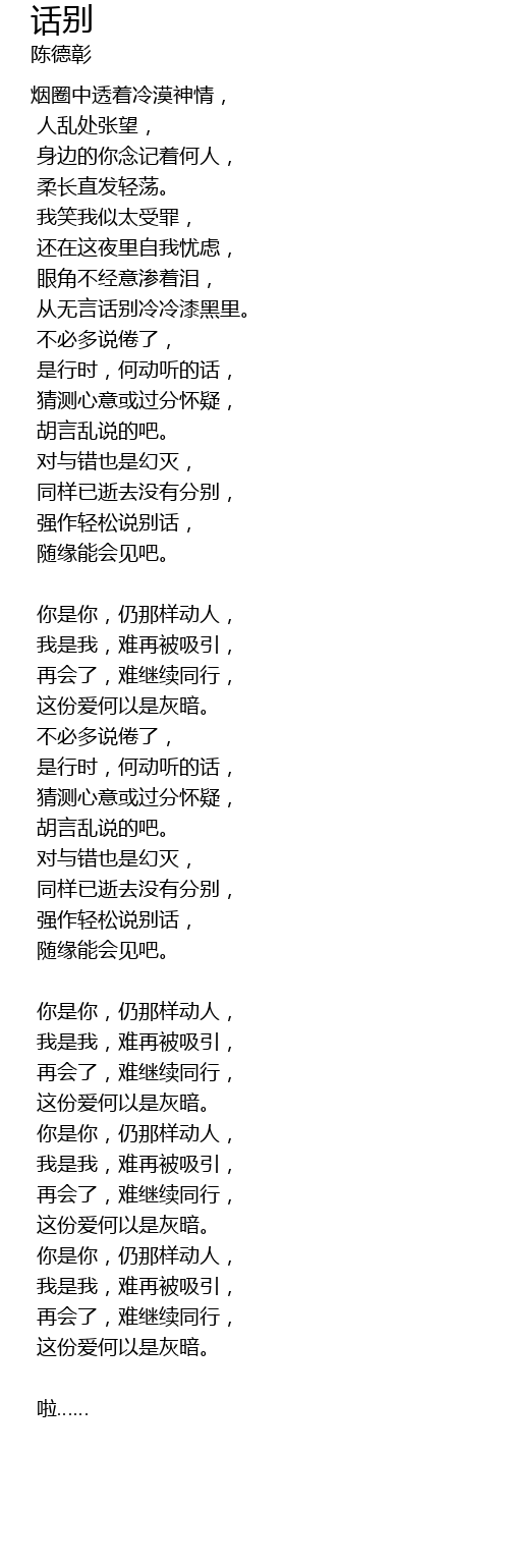 | qiáng zuò qīng sōng shuō bié huà, | |