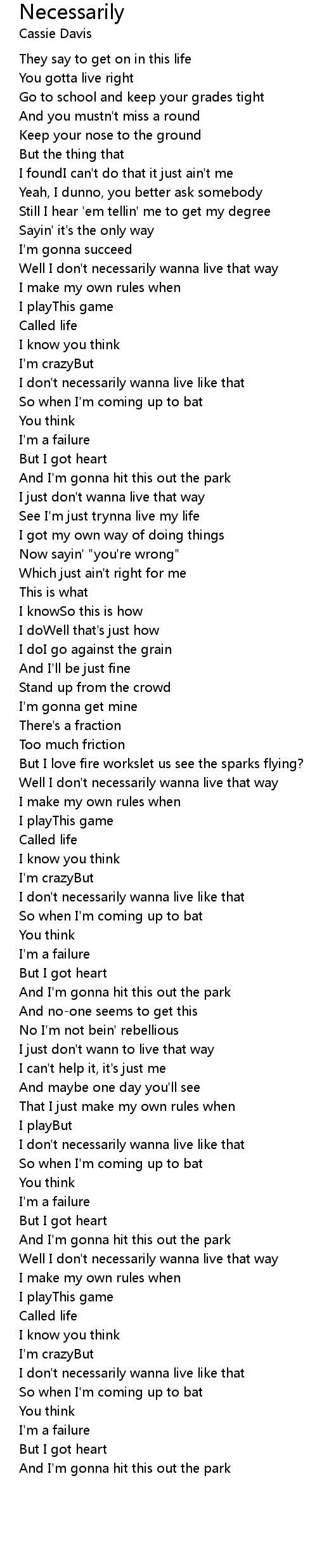 Well I don't necessarily wanna live that way |