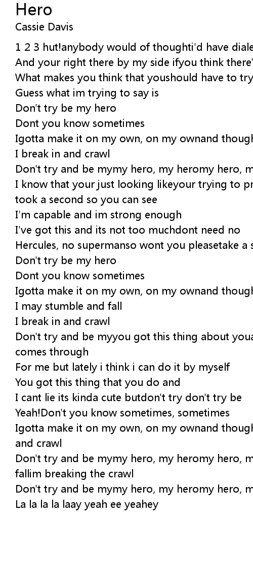 Don't try and be mymy hero, my heromy hero, my herothough i may stumble and fallim breaking the crawl |