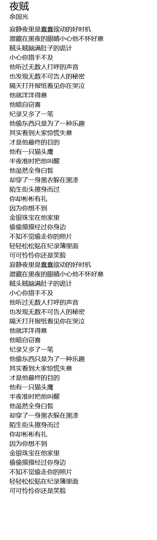 | [00:18.350] | 潜藏在黑夜的眼睛小心他不怀好意 |