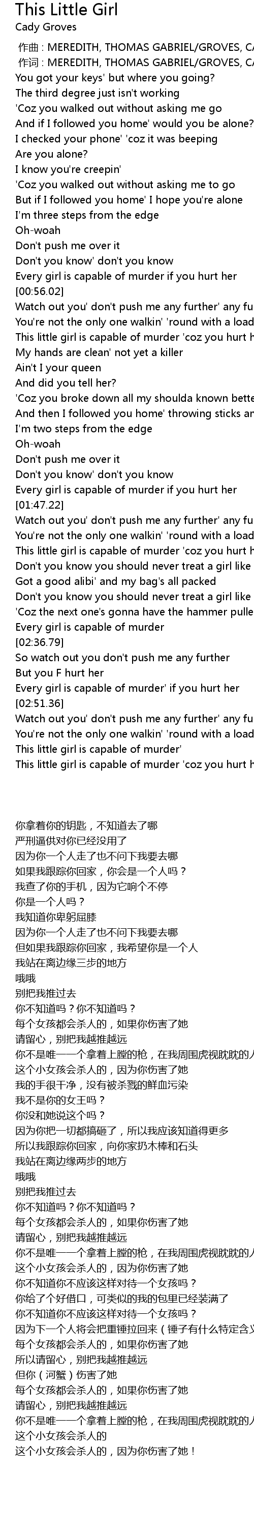 | [02:01.60] | This little girl is capable of murder ' coz you hurt her |