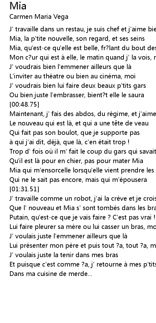 | [01:16.57] | Qu' il est là pour en chier, pas pour mater Mia |