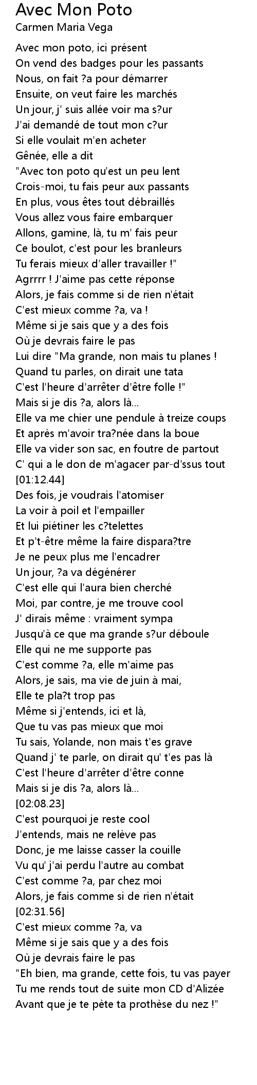 | [00:02.10] | Avec mon poto, ici présent |