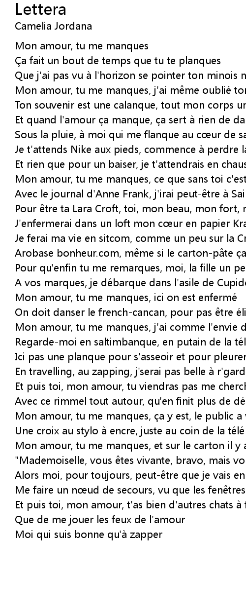 | Mon amour, tu me manques, j' ai m me oublié ton nom | |