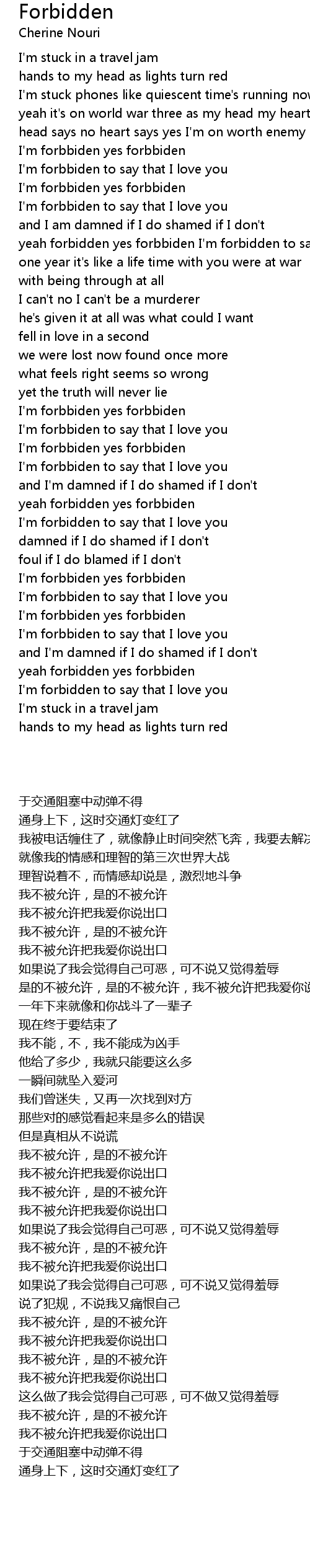 yeah forbidden yes forbbiden I'm forbidden to say that I love you |