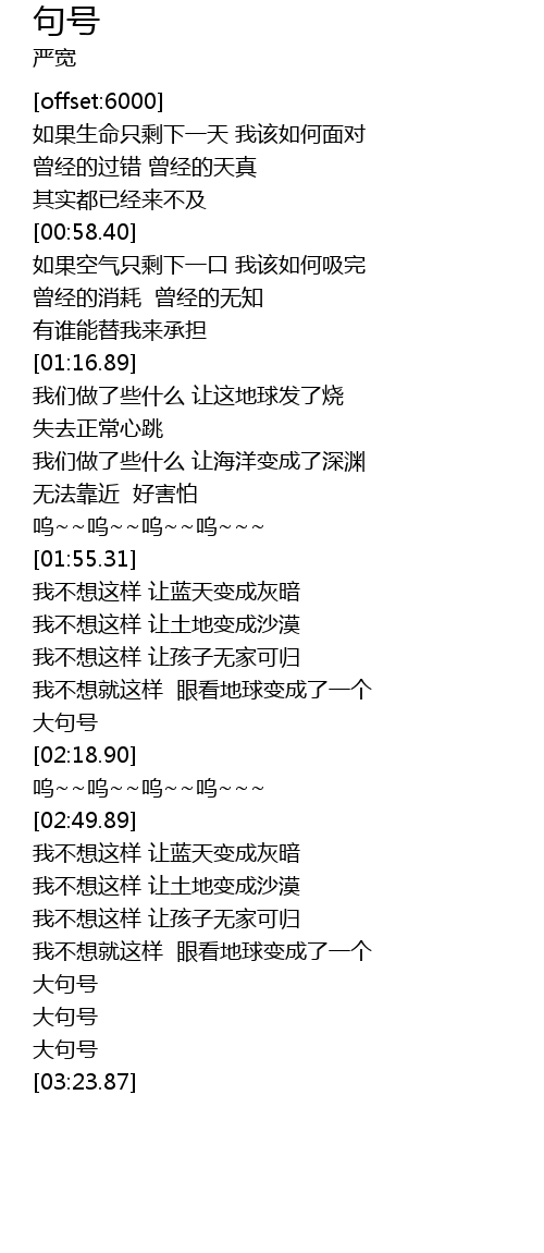 | [02:34.30] | 呜~~呜~~呜~~呜~~~ |