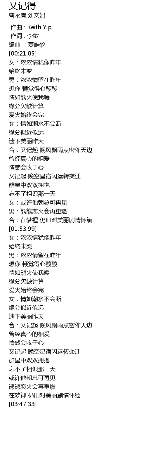 | [00:00.00] | zuo qu : Keith Yip |