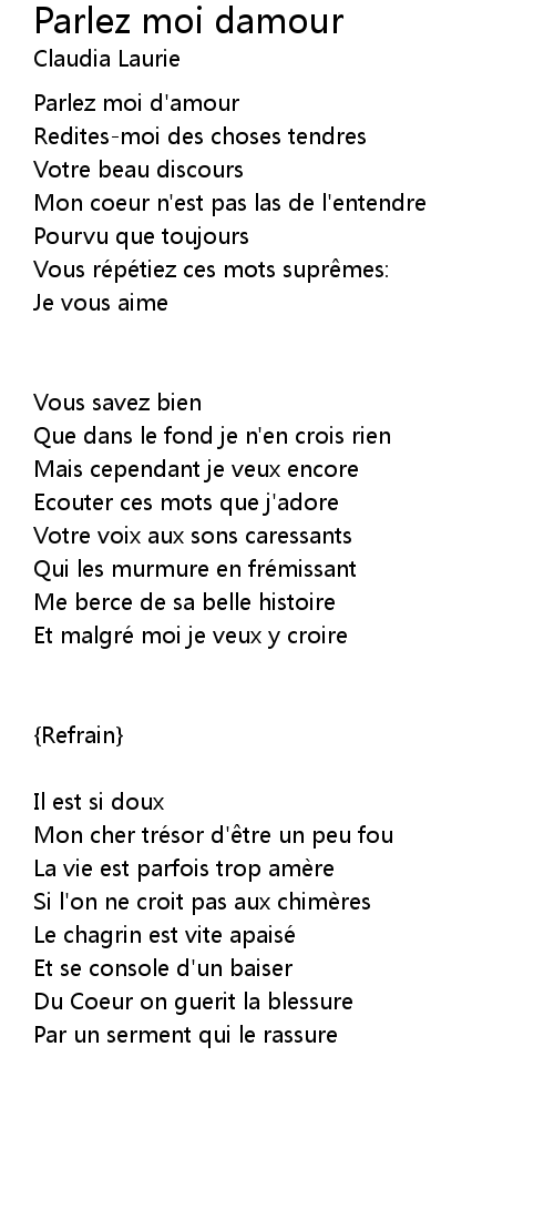 | Parlez moi d'amour | |