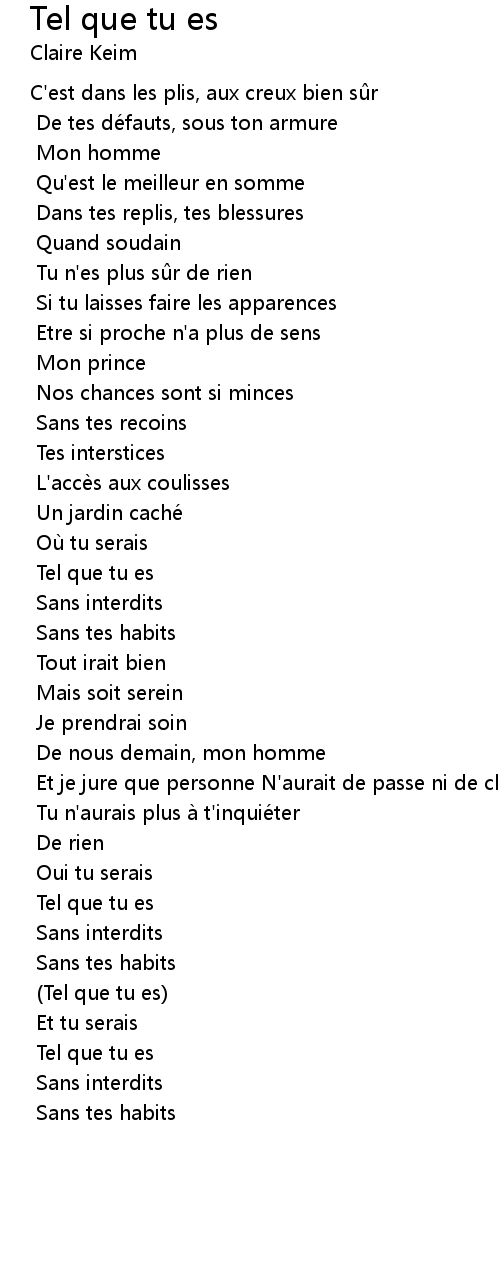 | Et je jure que personne N'aurait de passe ni de clés | |