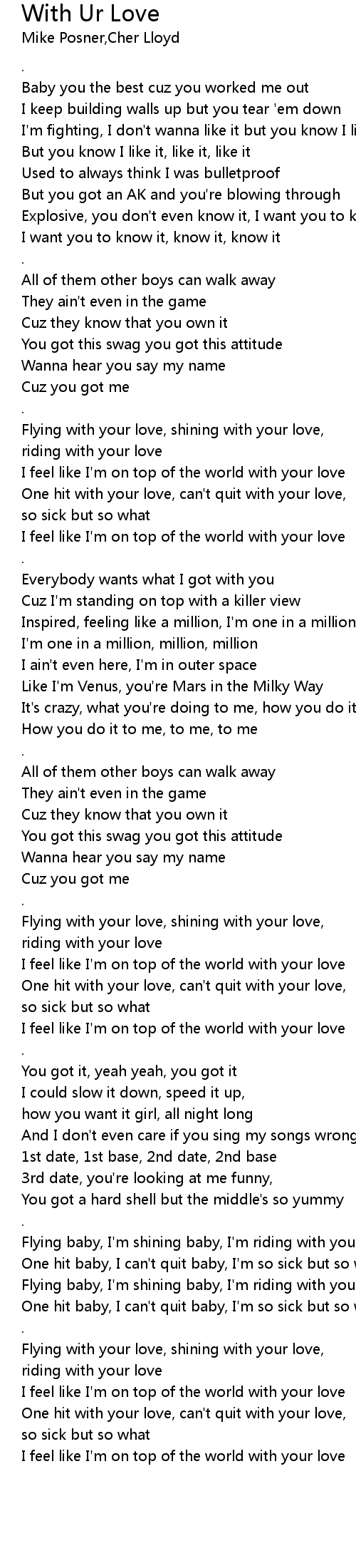 Flying with your love, shining with your love, |