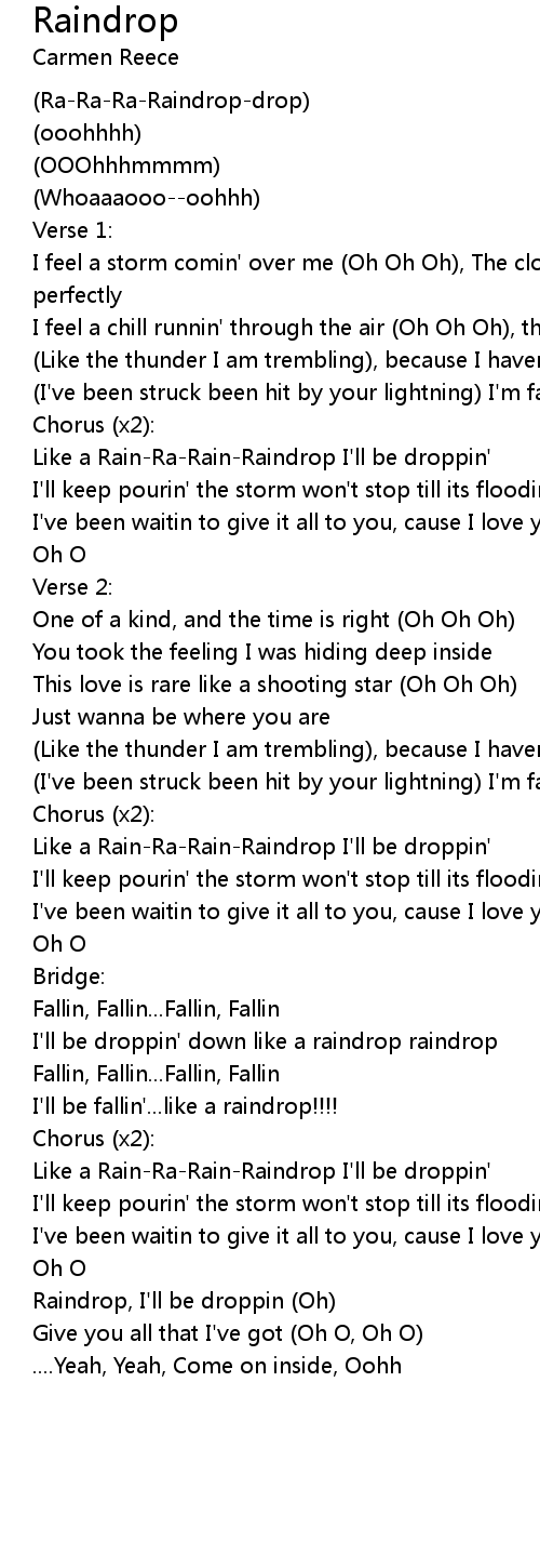 Like a Rain-Ra-Rain-Raindrop I'll be droppin' |