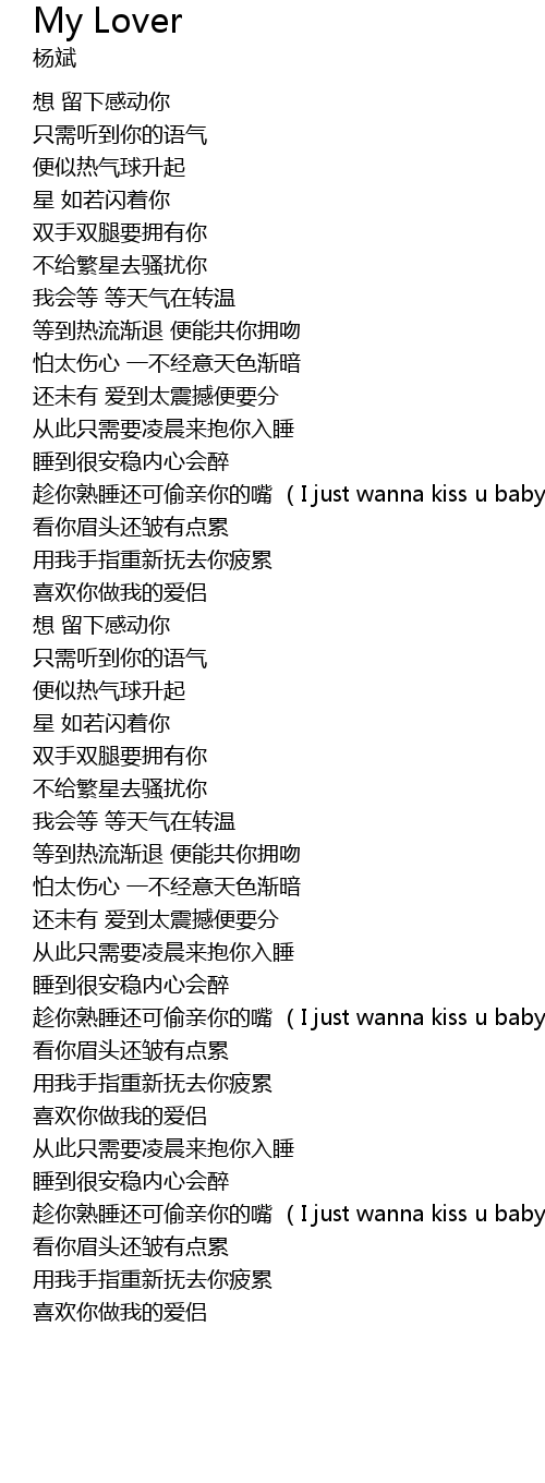 | [03:32.960] | chèn nǐ shú shuì hái kě tōu qīn nǐ de zuǐ I just wanna kiss u baby |