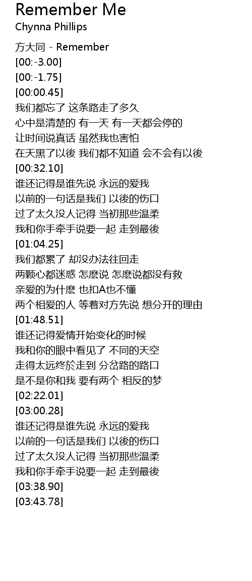 | [00:-3.82] | 方大同 - Remember |