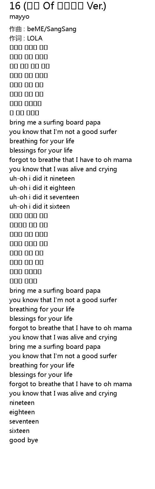 | 歌曲 | 16 (박솔 Of 솔루션스 Ver.) |