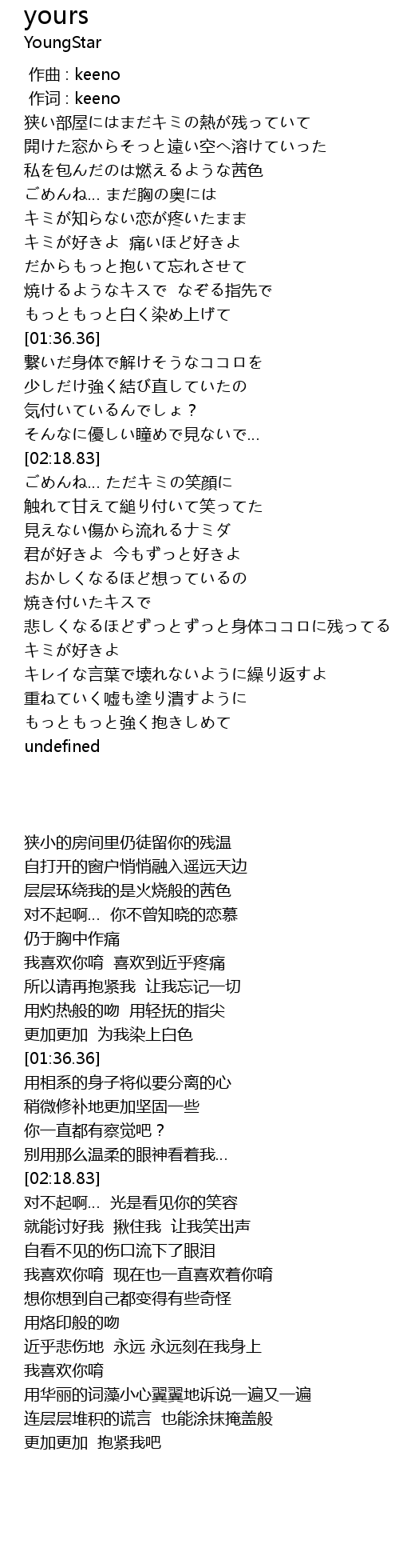 | [01:58.03] | 繋いだ身体で解けそうなココロを |