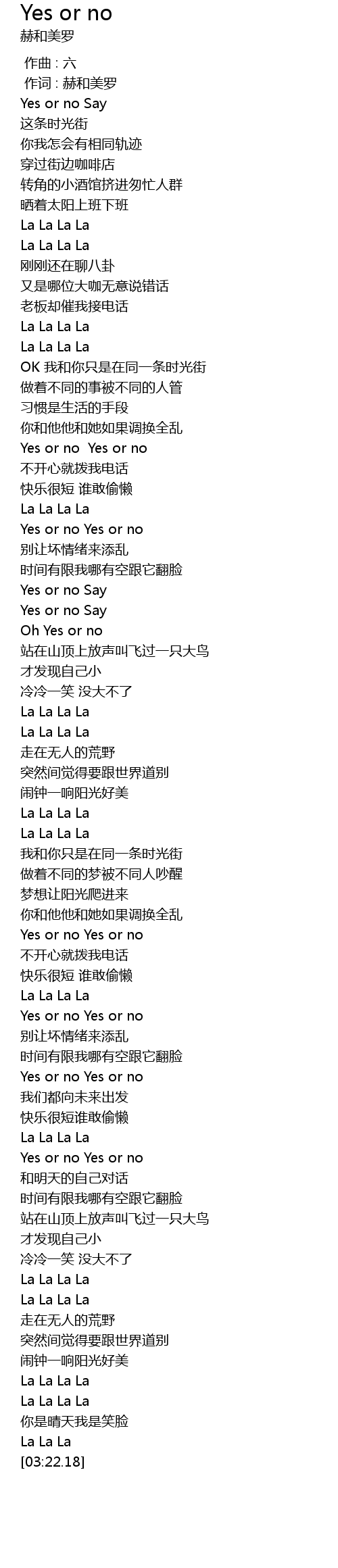 | [02:03.87] | Yes or no Yes or no |