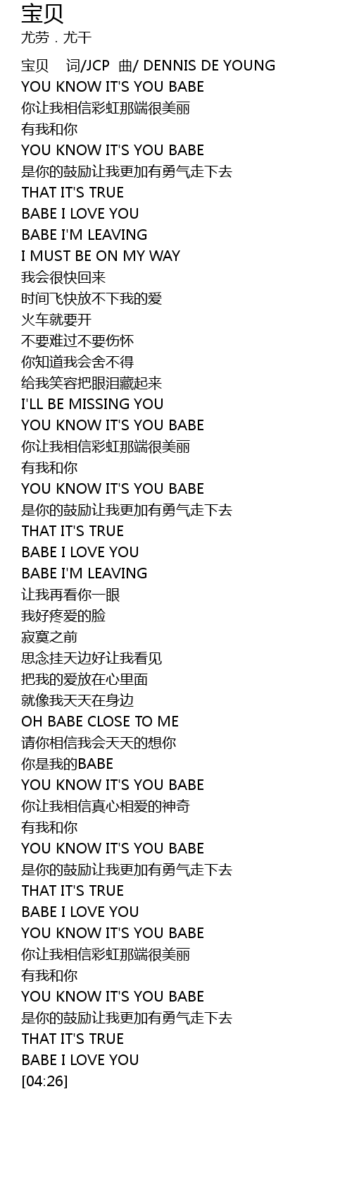 | [00:00] | 宝贝 词/JCP 曲/ DENNIS DE YOUNG |