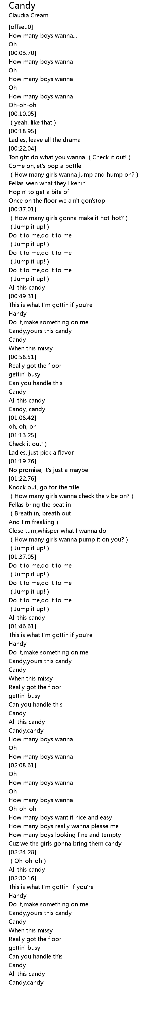 | [01:50.72] | Candy,yours this candy |