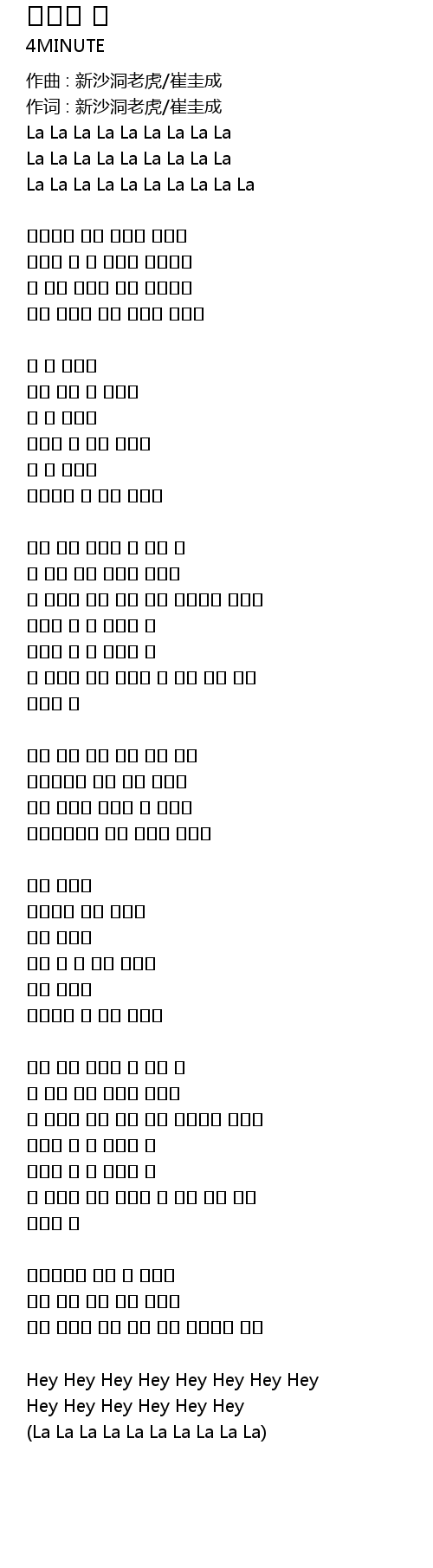 | 作词 : 新沙洞老虎/崔圭成 | |