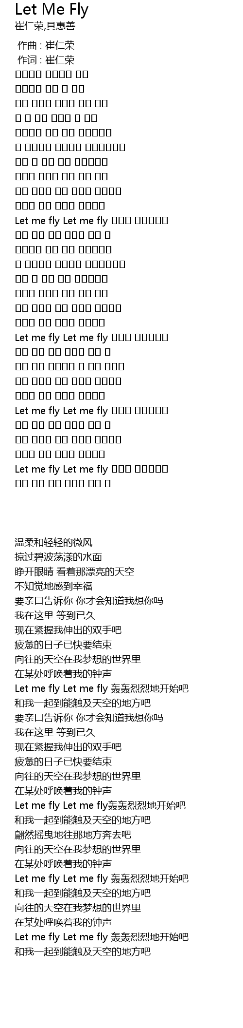 | [02:51.450] | Let me fly Let me fly 멋지게 시작할까요 |
