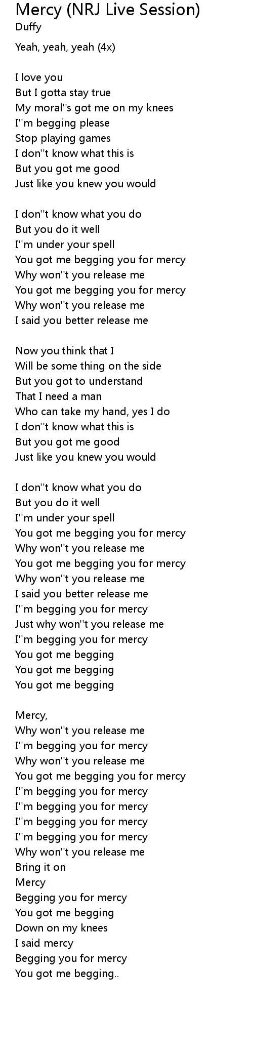 Begging you for mercy |