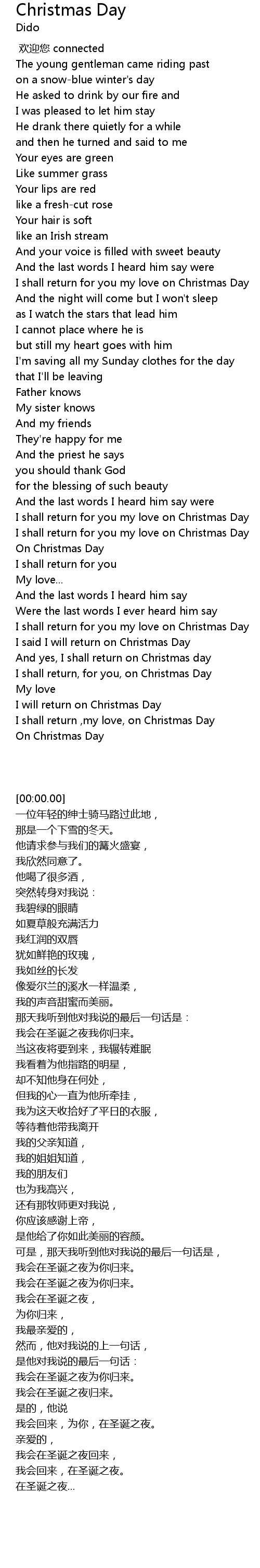 | [03:33.11] | I shall return ,my love, on Christmas Day |