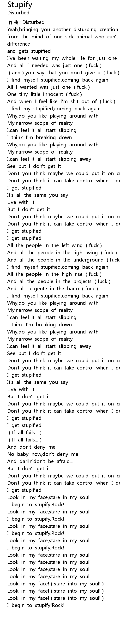 | [00:00.00] | zuo qu : Disturbed |