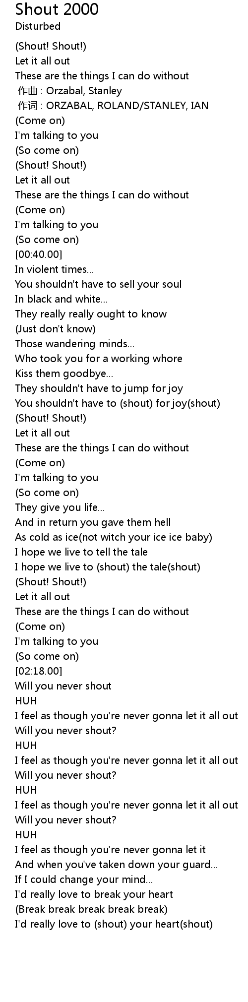 | [01:21.00] | You shouldn' t have to shout for joy shout |