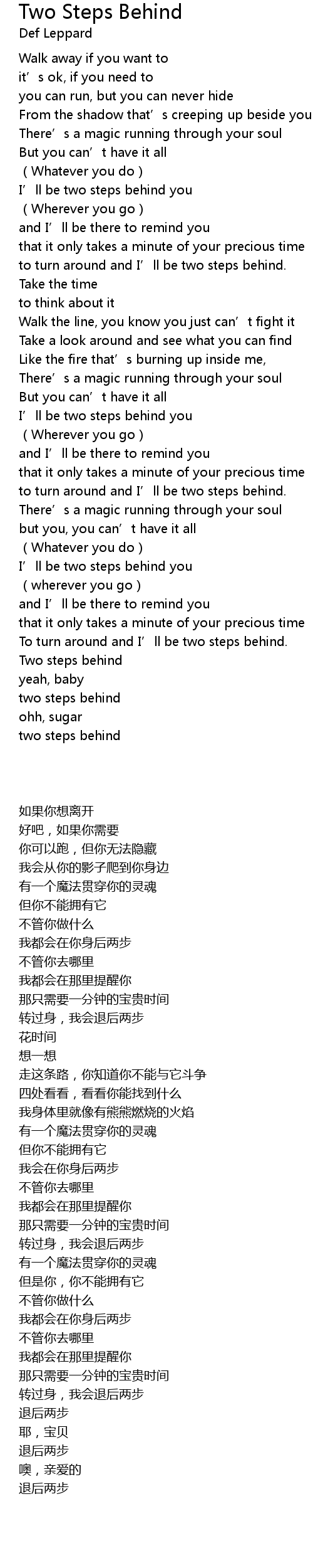 | 歌曲 | Two Steps Behind |