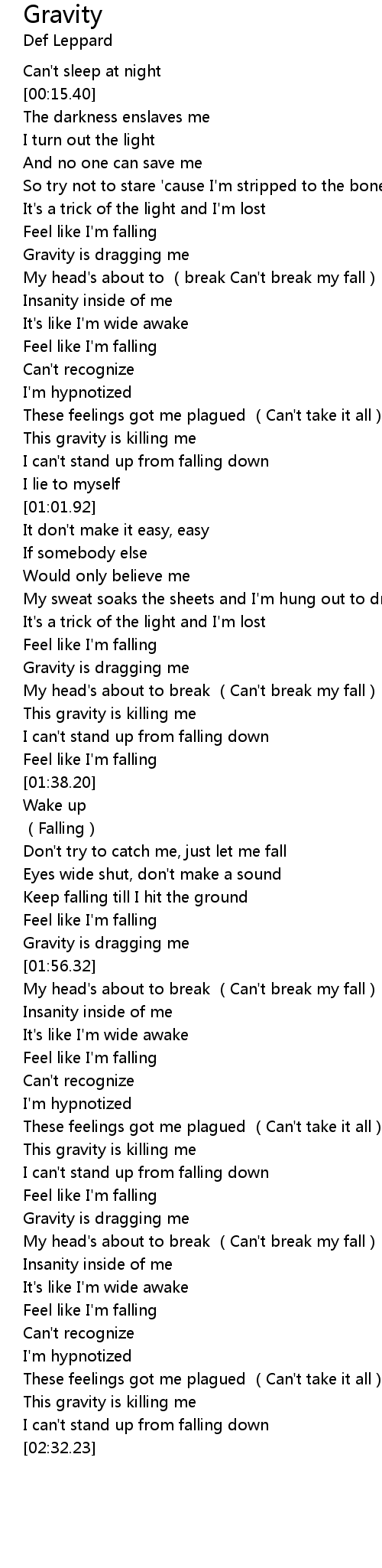 | [02:15.35] | My head's about to break (Can't break my fall) |