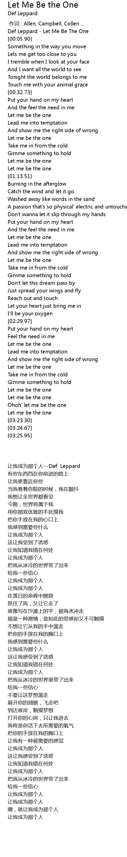 | [00:00.01] | Def Leppard Let Me Be The One |