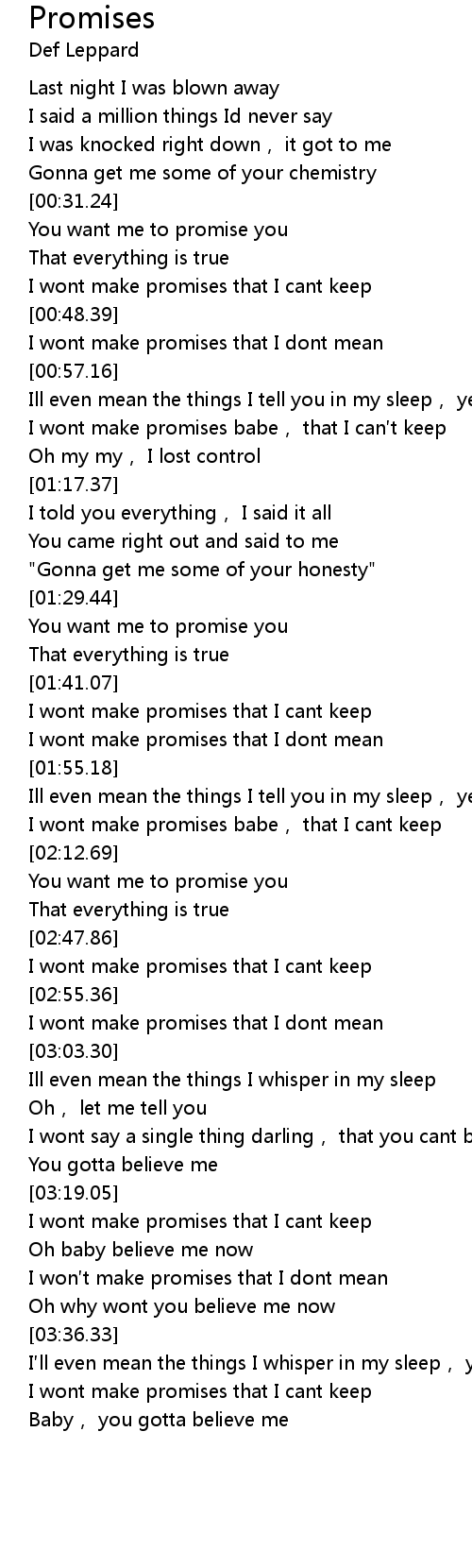 | [01:06.89] | I wont make promises babe, that I can t keep |