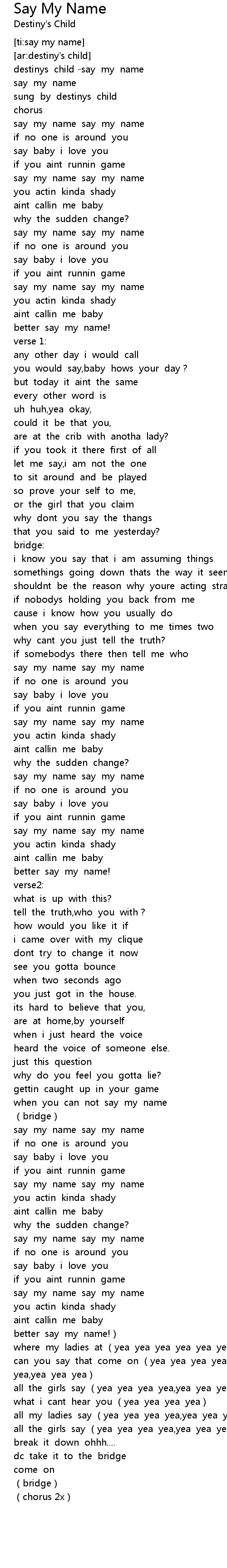 | [00:01.92] | say my name say my name |